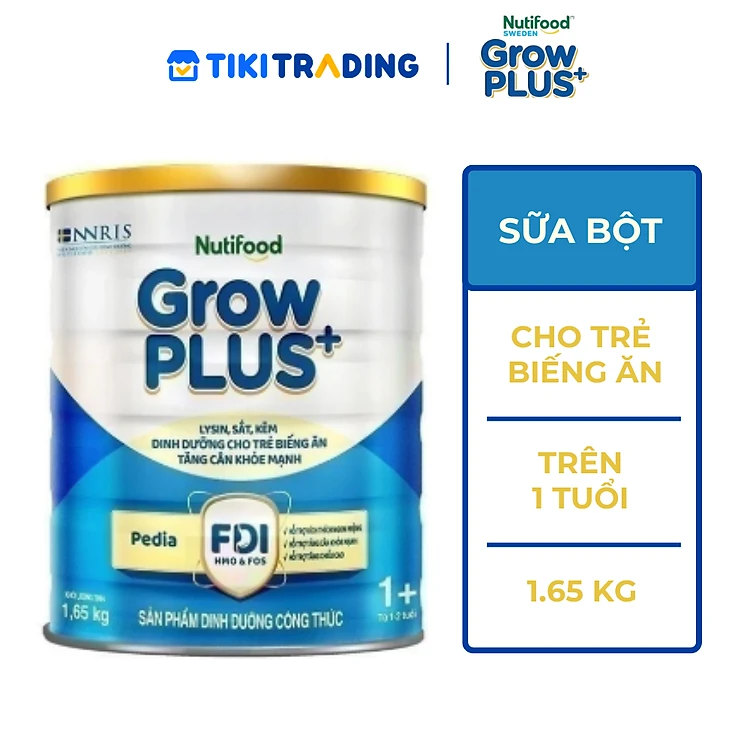 Sữa Bột GrowPLUS+ Biếng Ăn (Xanh) cho trẻ tăng cân khoẻ mạnh 1+ Lon 1,65KG