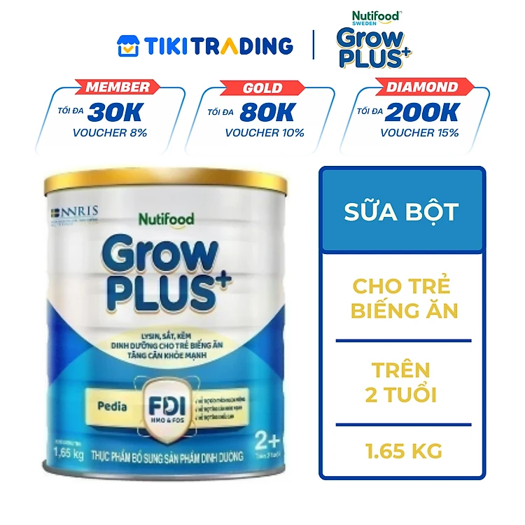 Sữa Bột GrowPLUS+ Biếng Ăn (Xanh) cho trẻ tăng cân khoẻ mạnh 2+ Lon 1,65KG