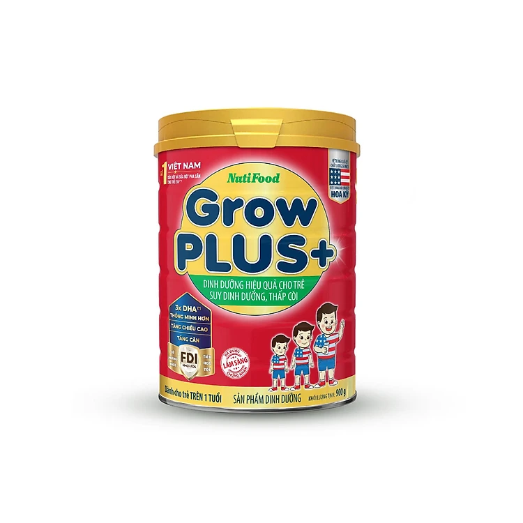 Sữa bột GrowPLUS+ Đỏ 900 Gr : sữa dành cho trẻ từ 1- 10 tuổi bị suy dinh dưỡng thấp còi (mẫu mới) của NutiFood