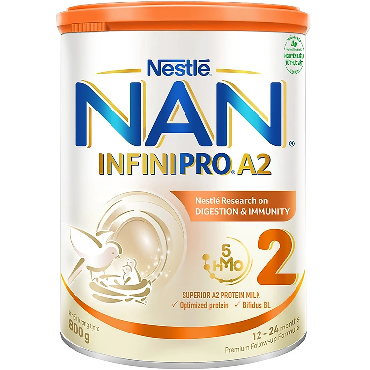 Sữa bột NAN INFINIPRO A2 2 với công thức đầu tiên chứa đạm A2, 6HMO & Lợi khuẩn kép nhập khẩu Thụy Sĩ - Hộp 800g (12 - 24 tháng)