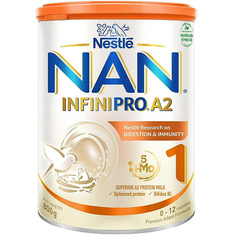 Sữa bột Nestlé NAN INFINIPRO A2 1 với công thức đầu tiên chứa đạm A2, 6HMO & Lợi khuẩn kép nhập khẩu Thụy Sĩ - Hộp 800g cho bé 0 - 12 tháng