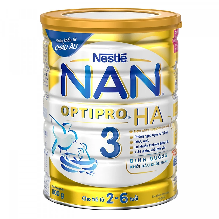 - NESTLÉ NAN OPTIPRO HA 3 (800g) là sản phẩm dinh dưỡng công thức cho trẻ từ 2 – 6 tuổi. NAN OPTIPRO HA 3 bổ sung hơn 36 dưỡng chất cần thiết toàn diện về thể chất và trí não của trẻ.