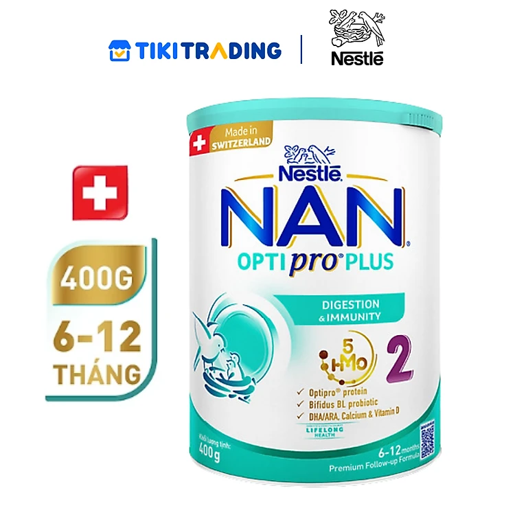 Sữa bột Nestlé NAN OPTIPRO PLUS 2 400g/lon với 5HMO Sản Xuất Tại Thụy Sĩ (6-12 tháng)