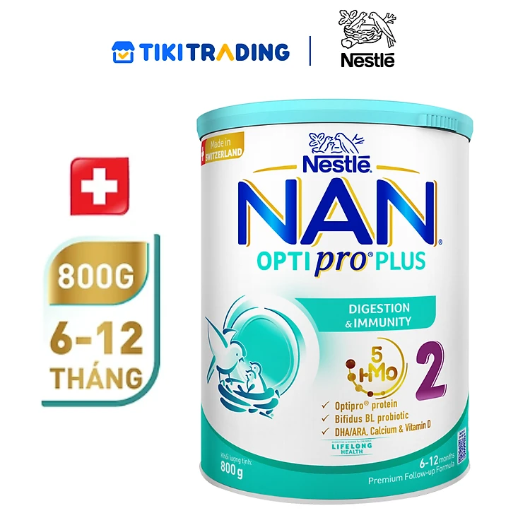 Sữa bột Nestlé NAN OPTIPRO PLUS 2 800g/lon với 5HMO Sản Xuất Tại Thụy Sĩ (6 - 12 tháng)