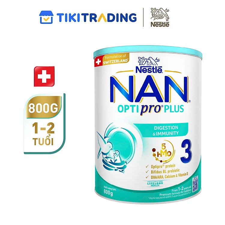 Sữa Bột Nestlé NAN OPTIPRO PLUS 3 800g/lon với 5HMO xuất xứ Thụy Sĩ - Hỗ trợ Tiêu Hóa, Đề Kháng, Trí Não & Chiều Cao (1-2 tuổi)