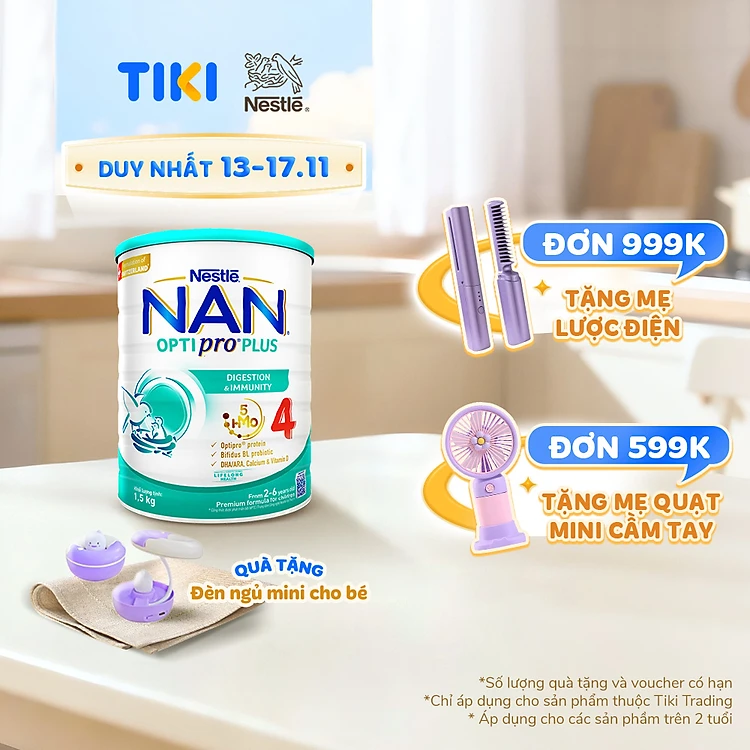 Sữa bột Nestlé NAN OPTIPRO PLUS 4 1500g/lon với 5HMO Giúp tiêu hóa tốt