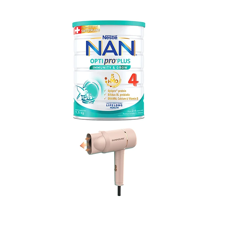 [Tặng Máy sấy tóc Sunhouse] Sữa bột Nestlé NAN OPTIPRO PLUS 4 1500g/lon với 5HMO Giúp tiêu hóa tốt