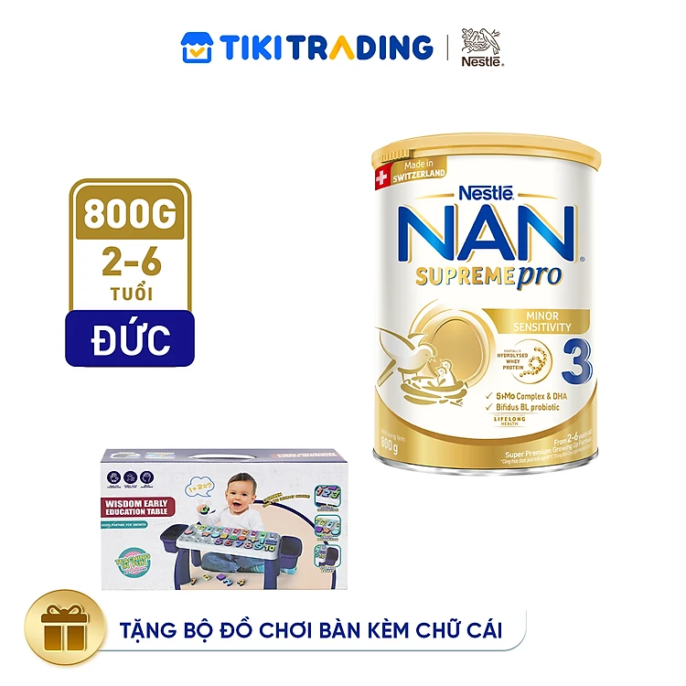 Sữa bột Nestlé NAN SUPREMEPRO 3 800g nhập khẩu Đức đạm Gentle Optipro ngừa mẫn cảm Tặng Đồ Chơi Bàn Kèm Chữ Cái (Dành cho trẻ từ 2 - 6 tuổi)