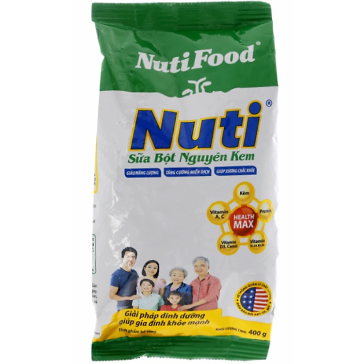 - Sữa Bột Nguyên Kem Nutifood (400g) được sản xuất bằng công thức độc quyền Health Max cải tiến mới với hệ dưỡng chất cân bằng hoàn hảo. Sản phẩm cung cấp đầy đủ dưỡng chất thiết yếu cho cơ thể phát triển toàn diện.