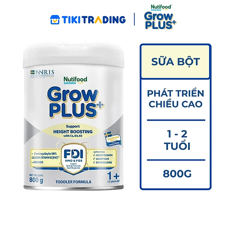 Sữa bột Nutifood GrowPLUS+ Cao Lớn Vượt Trội trên 1 tuổi Lon 800g