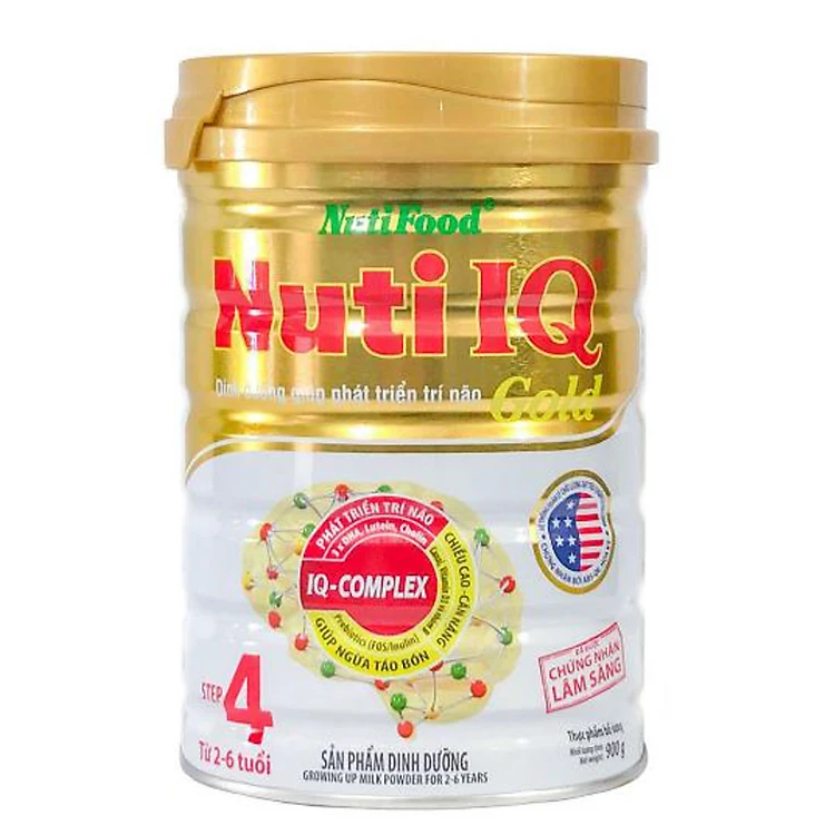Sữa Nuti IQ Gold Step 4 với công thức đặc chế IQ-Complex được các chuyên gia dinh dưỡng NutiFood thiết kế khoa học cho bé có thành phần tăng cường gấp 3 lần DHA, cùng Lutein, Taurin, Cholin và các dưỡng chất thiết yếu khác giúp bé phát triển trí não, thị giác, tăng khả năng học hỏi, ghi nhớ tốt.