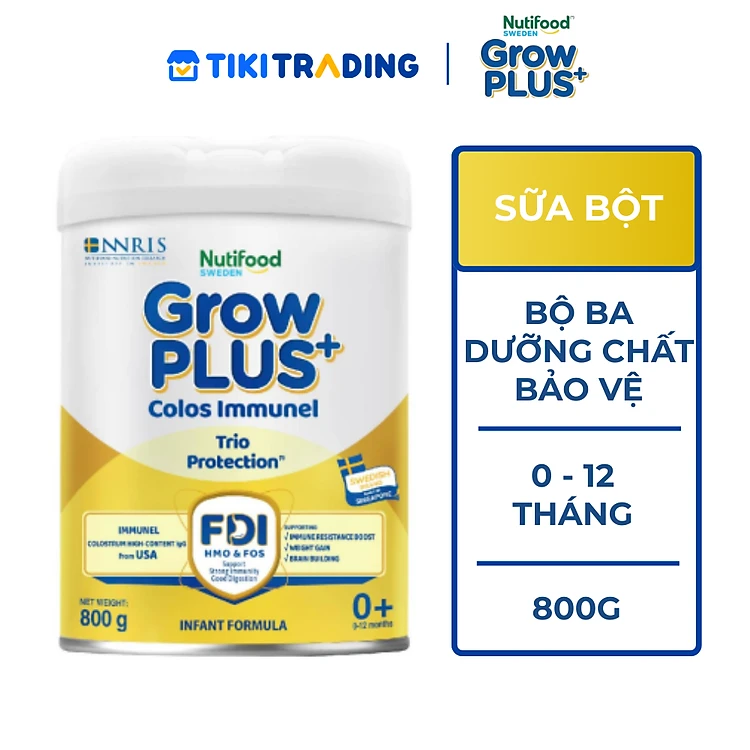 Sữa Bột Nutifood Sweden GrowPLUS+ Sữa Non Immunel từ 0 - 12 tháng lon 800g
