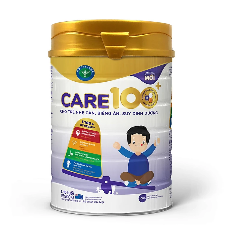 Sữa bột Nutricare Care 100+ mới cho trẻ nhẹ cân biếng ăn suy dinh dưỡng 1-10 tuổi (900g)