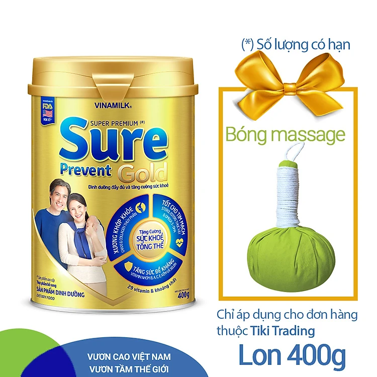 - Sữa Bột Vinamilk Sure Prevent Hộp Thiếc (400g) chú trọng nghiên cứu phát tiển những sản phẩm dinh dưỡng đặc biệt giúp người lớn tuổi ăn ngon, ngủ ngon, ứng dụng những thành tựu khoa học tiên tiến giúp phục hồi sức khỏe.