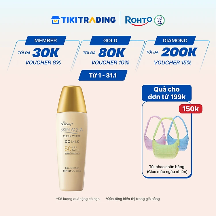Kem chống nắng Skin Aqua trang điểm tạo nền trắng mịn & đều màu dạng sữa Sunplay Skin Clear White CC Milk SPF 50, PA++++ 25g