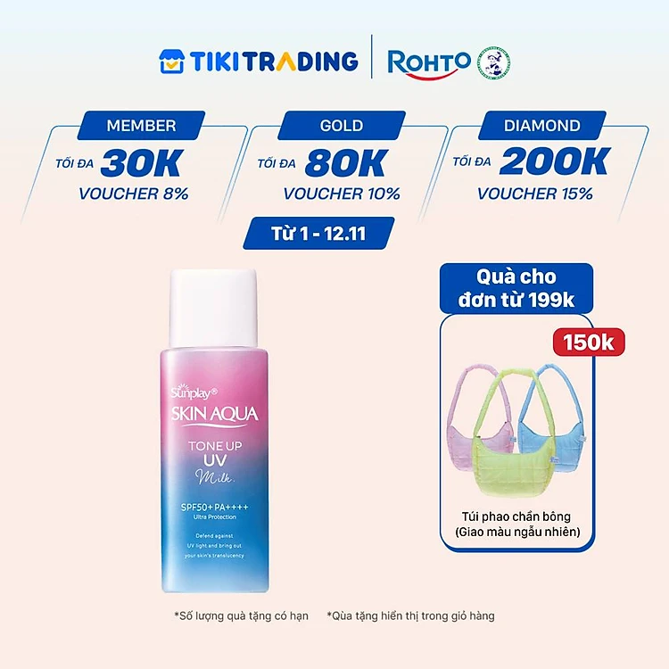 Sữa chống nắng nâng tông Skin Aqua Tone up Lavender cho da tối màu & da vàng Sunplay Skin Aqua Tone Up UV Milk Lavender SPF 50+ PA++++ 50g