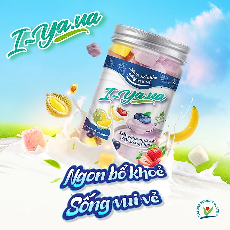 Sữa chua ngũ sắc sấy thăng hoa I.Yaua hũ 55g (việt quất, sầu riêng, chuối, dâu và truyền thống)