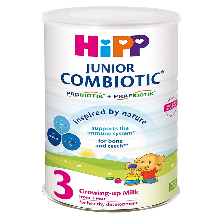 - Sữa Công Thức HiPP 3 Junior Combiotic (800g) trẻ từ 1 tuổi trở lên vẫn rất cần bổ sung nguồn dinh dưỡng thiết yếu, đặc biệt cần bổ sung hàm lượng canxi và vitamin D hàng ngày cho trẻ dễ hấp thụ để phát triển chắc hệ xương, răng trong giai đoạn tập đi và biết đi. HiPP 3 Growing-up Combiotic có chứa tất cả những dưỡng chất cần thiết cho sự tăng trưởng và phát triển của trẻ.