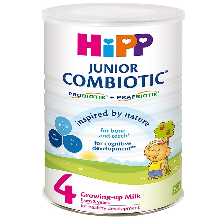 - Sữa Công Thức HiPP 4 Junior Combiotic (800g) sản phẩm bổ sung Probiotic là những khuẩn Axit Lactic tự nhiên (lợi khuẩn) được phân lập gốc từ sữa mẹ hỗ trợ hệ tiêu hóa của trẻ.