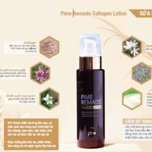 SỮA DƯỠNG DA COLLAGEN PIME REMADE LOTION Chứa nhiều dưỡng chất phục hồi da, giúp loại bỏ , sạm đen, nếp nhăn, khô nứt da và thúc đẩy sự tái tạo da, giúp chống lão hóa da.