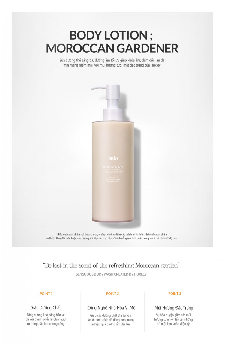 Sữa dưỡng thể cấp ẩm dồi dào từ tinh chất xương rồng Huxley Body Lotion: Moroccan Gadener 300ml