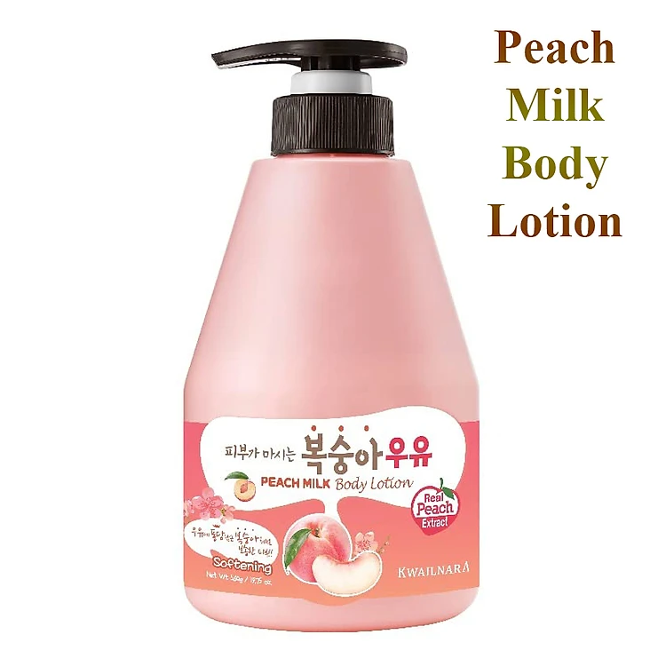 Sữa dưỡng thể đào và sữa ong chúa Welcos Kwailnara Milk Body Lotion dưỡng ẩm và tái tạo da Hàn Quốc 560 g