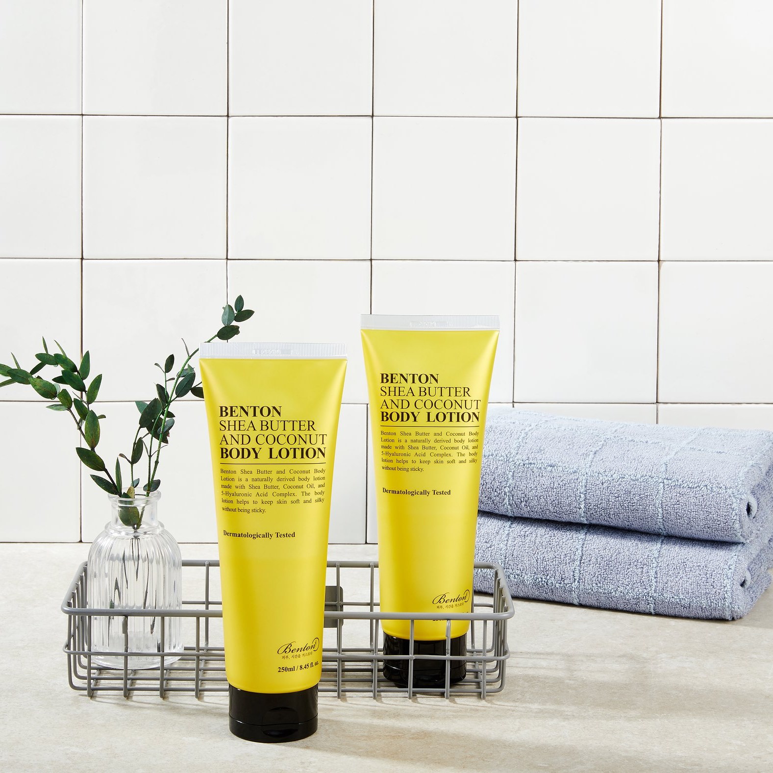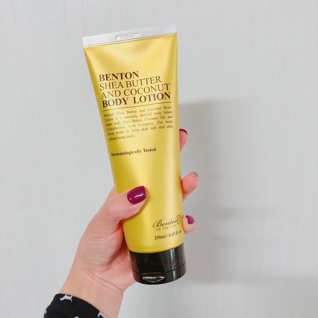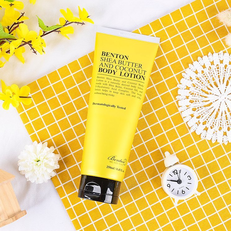 Benton Shea Butter và Coconut Body Lotion là một loại sữa dưỡng thể có nguồn gốc tự nhiên được làm bằng bơ, dầu dừa, và phức hợp axit 5-Hyaluronic. Sữa dưỡng giúp da mềm mại và mượt mà không bị bết dính.