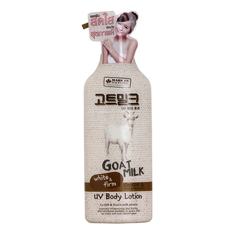 Sữa dưỡng thể chiết xuất từ sữa dê chứa các thành phần giàu dưỡng chất cho da như: protein sữa dê, Vitamine B3, B5, an toàn cho da.