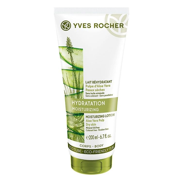 - Sữa Dưỡng Thể Tinh Chất Lô Hội Yves Rocher Hydratation Moisturizing Lotion Aloe Vera Pulp 200ml giúp dưỡng ẩm, làm mịn da, cấp ẩm cho làn da khô ráp trở nên mềm mại, mịn màng. Sản phẩm có công thức đặc biệt với chiết xuất từ các thành phần hữu cơ cho bạn làn da mượt mà không thể cưỡng lại khi chạm vào. Cùng với hương thơm quyến rũ đầy lôi cuốn lưu lại thật lâu trên cơ thể bạn.