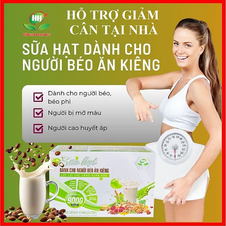 Sữa hạt dành cho người Béo Ăn Kiêng Hồng Hoa Organic 36gói/ 900gr – Hỗ trợ giảm thể trọng tại nhà theo Thực Dưỡng; Thuần Chay; Không đậu nành