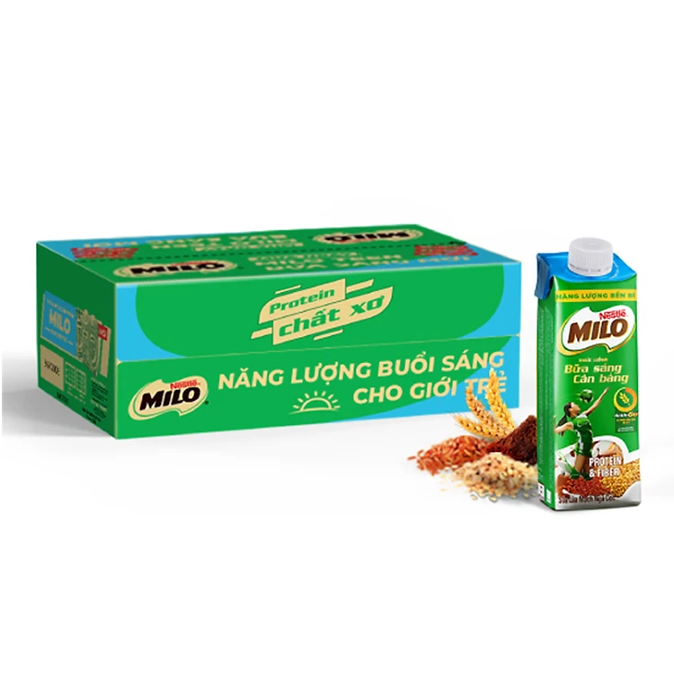 - Sữa Milo lúa mạch Nestlé Milo Teen bữa sáng với chiết xuất Protomalt từ mầm lúa mạch kết hợp với vitamin cùng khoáng chất thiết yếu, nay bổ sung thêm Protein và Canxi giúp giới trẻ phát triển thể chất toàn diện và tiếp năng lượng cho hành trình chinh phục bền bỉ mỗi ngày. Thức uống có hương vị cacao ngon tuyệt cùng thiết kế bao bì nắp vặn tiện lợi là lựa chọn tuyệt vời cho các bạn trẻ năng động.
