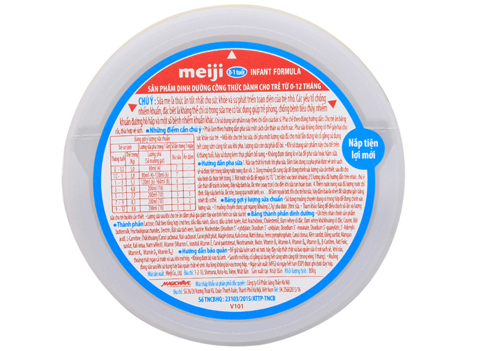 - Nồng độ pha chế của Sữa Meiji: Nồng độ chuẩn của Sữa Meiji là 13,5% trọng lượng bột/khối lượng sản phẩm dinh dưỡng công thức. Hàm lượng cô đặc sẽ là 13,1% tương đương với hàm lượng sữa mẹ là 12,8±1,5%