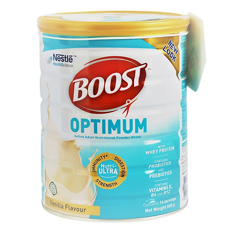 Boost Optimum là dòng sản phẩm được thiết kế để đáp ứng đầy đủ nhu cầu của cơ thể lão hóa, cho người trung và cao tuổi. Sản phẩm chứa Protein chất lượng cao, Probiotics và Prebiotic, Vitamin và khoáng chất để đáp ứng nhu cầu dinh dưỡng trong những trường hợp đặc biệt. Sử dụng sữa Boost Optimum kết hợp với tập luyện thể chất trong 6 tuần giúp cải thiện và cân bằng tình trạng dinh dưỡng và sức khỏe thể chất.