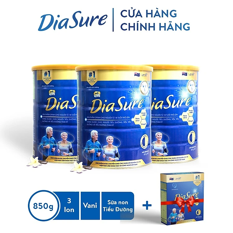 Sữa Non Diasure 850G (NEW) bổ sung thêm Nano Canxi, Omega3, Protein HMB (Mua 3 tặng 1hộp 450G)