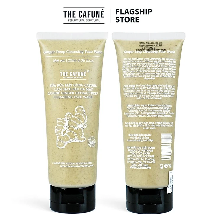Sữa rửa mặt Cafuné chiết xuất gừng và niacinamide thích hợp cho da thường, da mụn, giảm dầu nhờn, sạch thoáng 120ml
