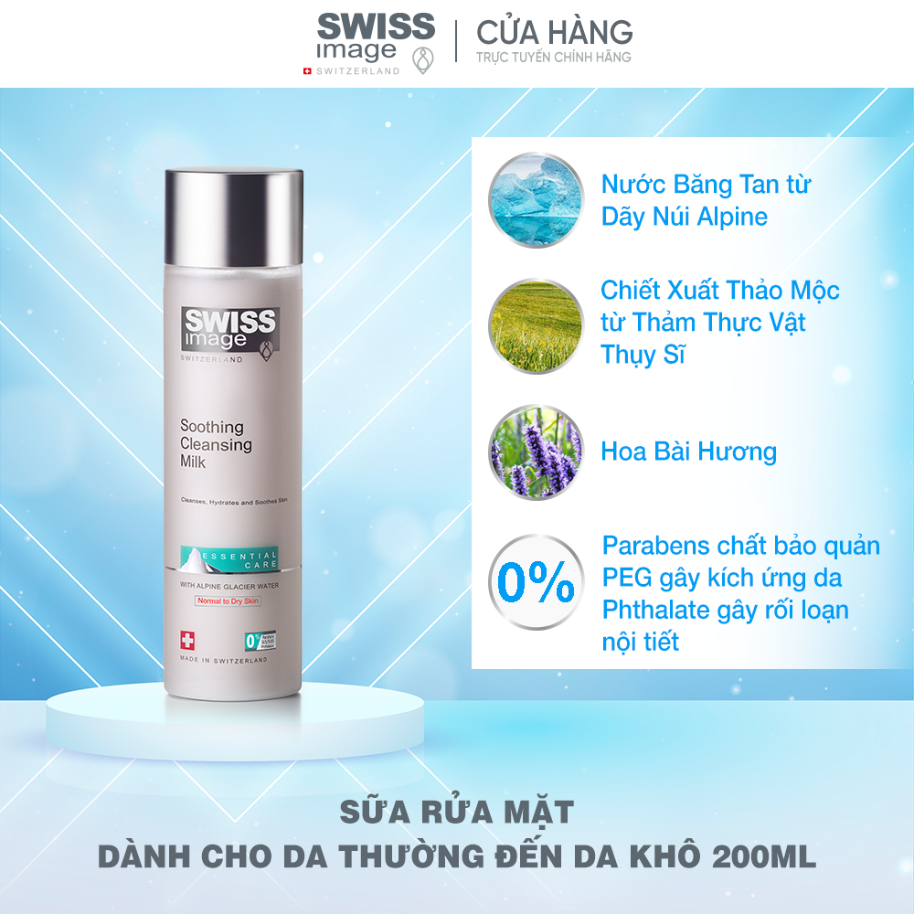 1. Sữa Rửa Mặt Hằng Ngày Dành Cho Da Thường Đến Da Khô Swiss Image Soothing Cleansing Milk 200ml