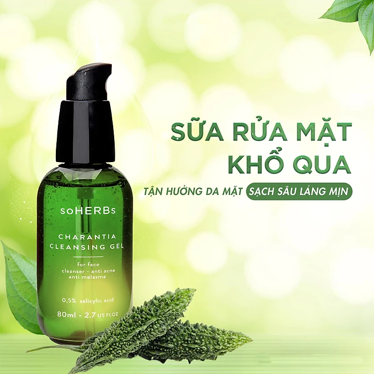 Sữa Rửa Mặt Khổ Qua SoHERBs 80ml, dạng gel cho da dầu mụn, nhạy cảm, ngăn ngừa mụn mờ thâm, cấp ẩm làm sạch da