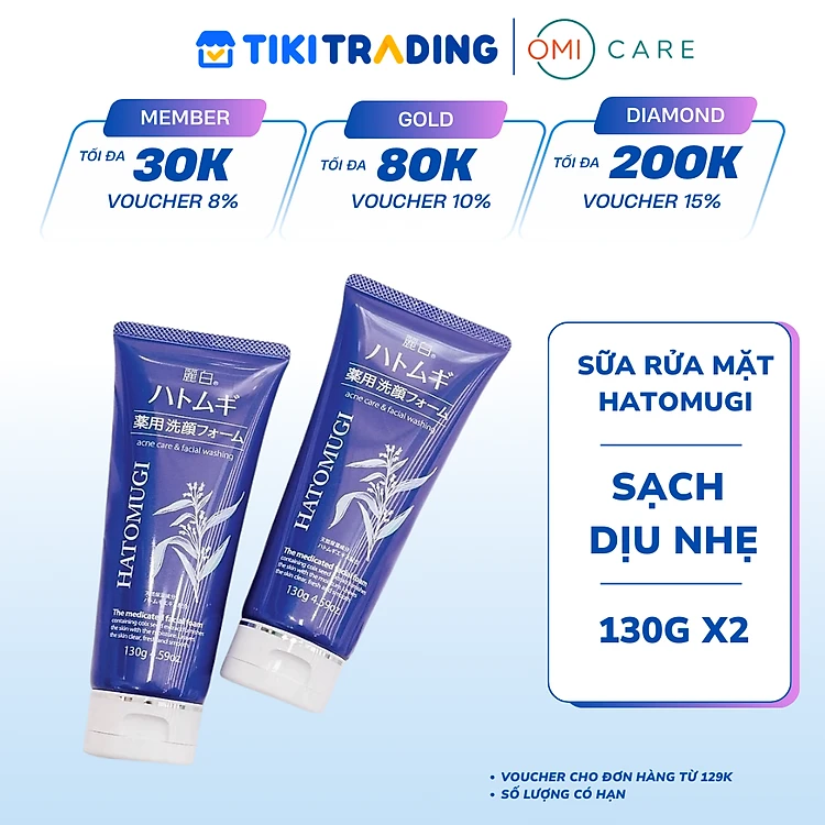 Combo 2 Sữa rửa mặt ngừa mụn, dưỡng ẩm và làm sáng da hatomugi 130g/tuýp