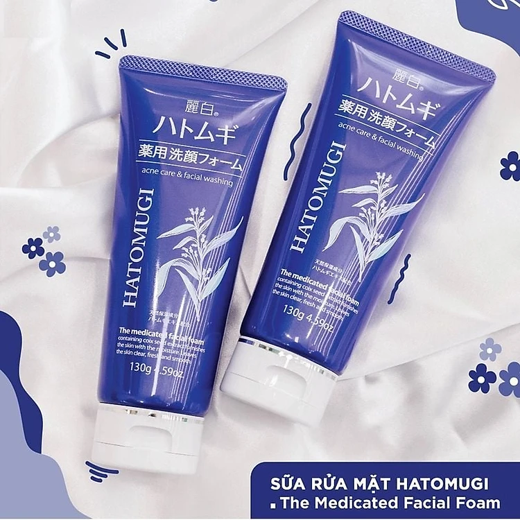 Combo 2 Sữa rửa mặt ngừa mụn, dưỡng ẩm và làm sáng da hatomugi 130g/tuýp