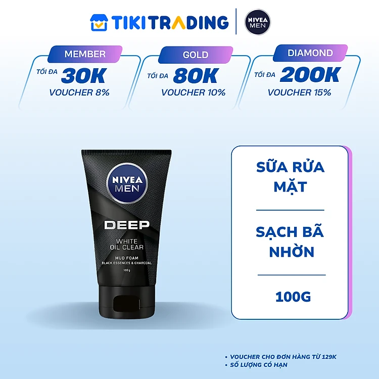 Sữa Rửa Mặt NIVEA MEN DEEP Than Đen Hoạt Tính Hút Nhờn Sáng Da (100G) - 84415