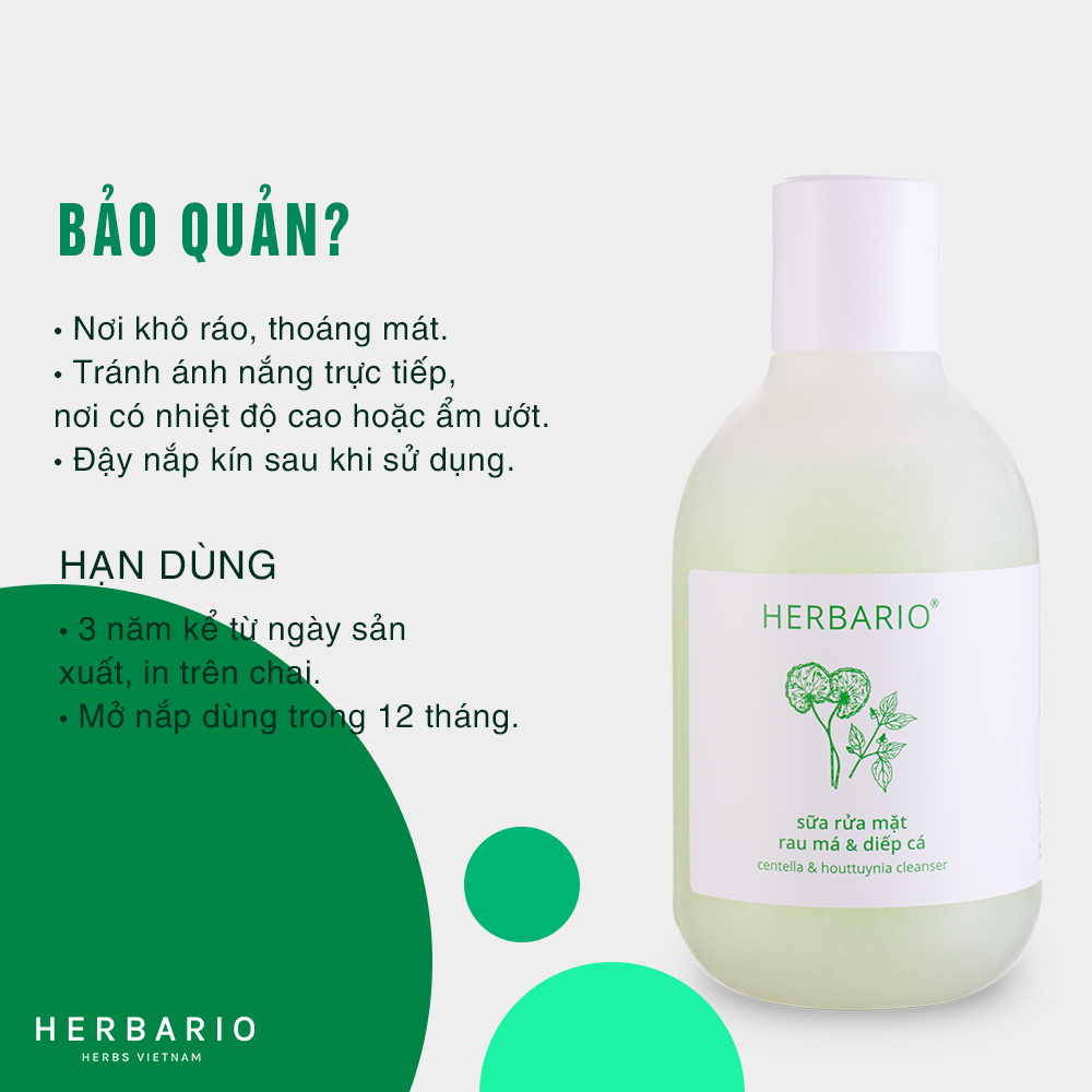 Công dụng sữa rửa mặt rau má & diếp cá herbario