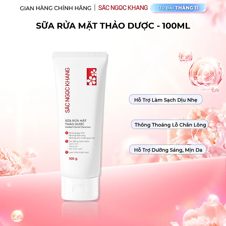 Sữa rửa mặt Thảo Dược Sắc Ngọc Khang 100g không gây khô da, Sạch Mịn, Sáng Da, Mờ Nám Sạm
