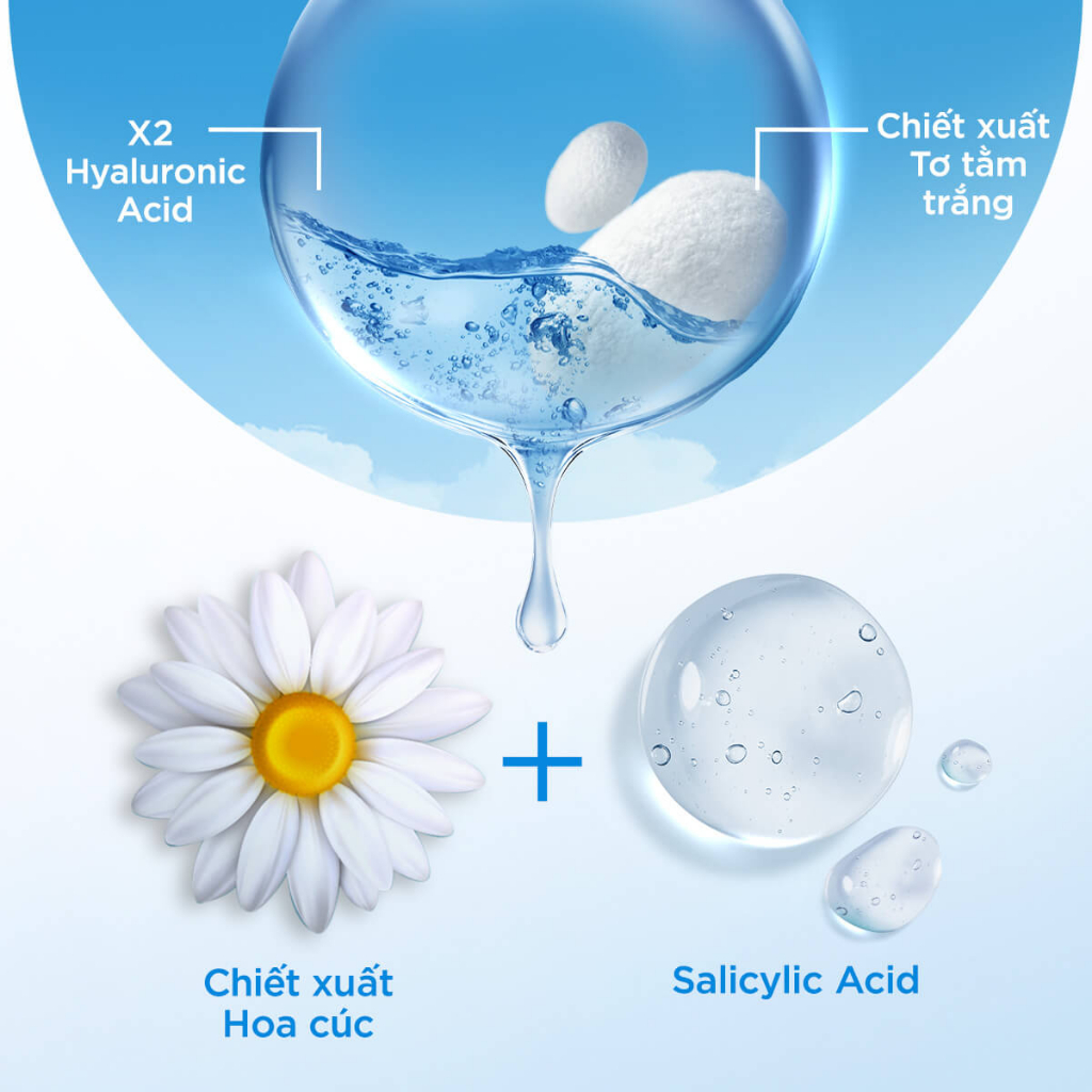 - Thành phần SALICYLIC ACID thuộc nhóm BHA, có khả năng loại bỏ tế bào chết hiệu quả, giúp ngăn chặn tình trạng mụn do bít tắt lỗ chân lông. Salicylic Acid còn giúp loại bỏ lượng dầu thừa trên da và làm ổn định cấu trúc da, kích thích quá trình tái tạo tế bào da mới mịn màng và rạng rỡ hơn.