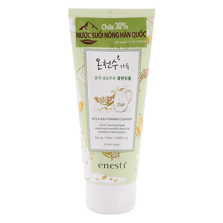 Sữa rửa mặt Suansu Enesti Gạo và Sữa Tươi (120ml) với thành phần đặc biệt chứa 30% nước suối nóng SUANBO nổi tiếng ở Hàn Quốc cung cấp khoáng chất có lợi cho da nhằm bổ sung khoáng chất và cân bằng độ pH cho da. Ngoài ra, thành phần an toàn, thiên nhiên lành tính không gây tình trạng kích ứng da.
