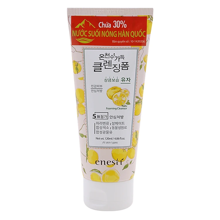 Sữa rửa mặt Suansu Yuzu Enesti (120ml) với thành phần đặc biệt chứa 30% nước suối nóng SUANBO nổi tiếng ở Hàn Quốc cung cấp khoáng chất có lợi cho da nhằm bổ sung khoáng chất và cân bằng độ pH cho da. Ngoài ra, thành phần an toàn, thiên nhiên lành tính không gây tình trạng kích ứng da.