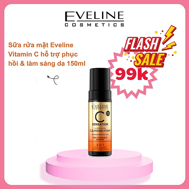 [Deal 99k] Sữa rửa mặt tạo bọt Eveline vitamin C phục hồi làm trắng da 150ML