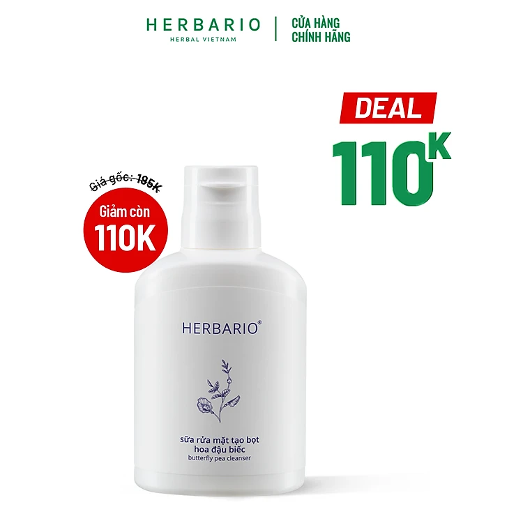 Sữa rửa mặt tạo bọt sẵn hoa đậu biếc herbario 100ml ngăn lão hóa chống oxy hóa cấp ẩm thuần chay