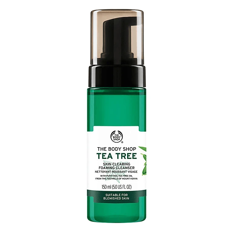 - Sữa Rửa Mặt Tạo Bọt The Body Shop Tea Tree (150ml) giúp rửa sạch và làm mới làn da khuyết điểm, làm trôi mọi bụi bẩn và lớp trang điểm thừa.