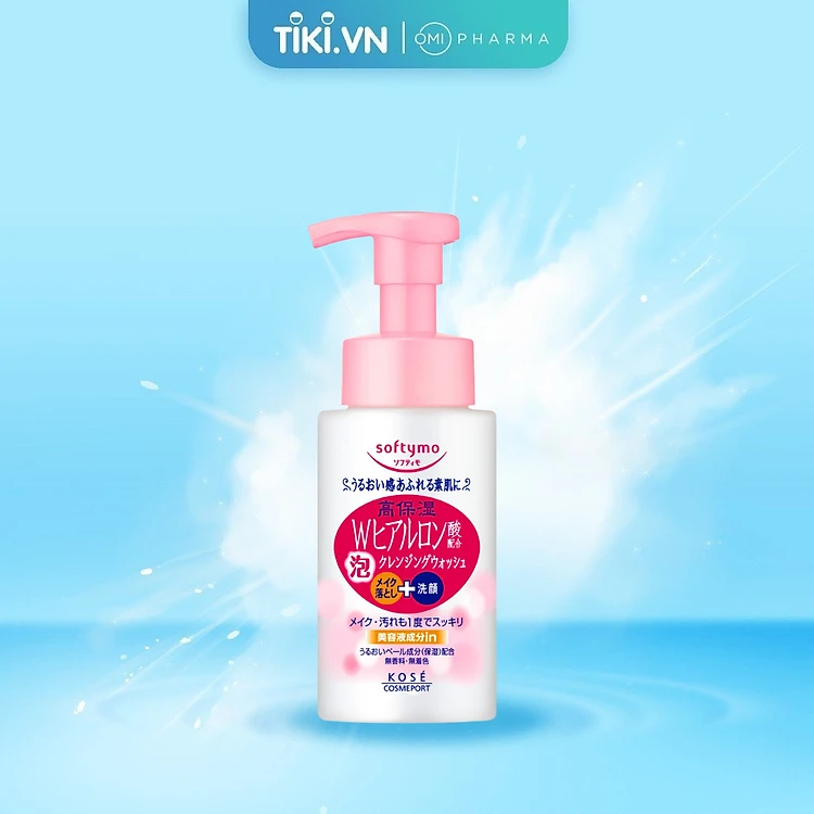 Sữa Rửa Mặt & Tẩy Trang 2in1 Tạo Bọt Dưỡng Ẩm, Chống Lão Hóa Bổ Sung Acid Hyaluronic Softymo Nhật Bản (200 ml)