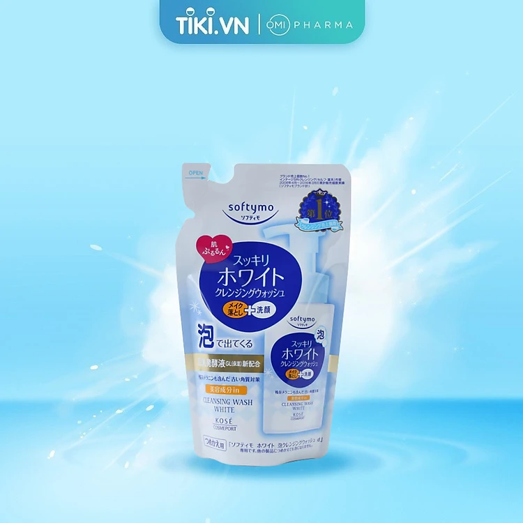 Sữa Rữa Mặt & Tẩy Trang Tạo Bọt Dưỡng Trắng Softymo Kose Nhật Bản Túi Refill (180ml)